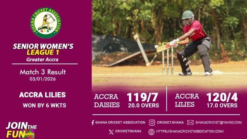 Accra Daisies endured a difficult outing in Week 2 of the Ghana Cricket Association (GCA) Senior Women’s T20 League, suffering back-to-back defeats against Accra Lilies and Accra Tulips on Saturday, January 3, 2026.-DAISIES' LOSS TO LILIES-In the morning fixture, Accra Lilies secured a convincing six-wicket victory after winning the toss and electing to…