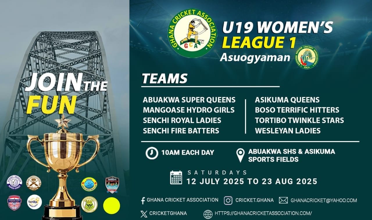 In a bold and inspiring move to empower young women through sports, the Ghana Cricket Association (GCA), in partnership with the Eastern Region Cricket Association, has announced the commencement of the U19 Women’s League 1. This exciting cricket league will feature eight formidable teams drawn from various communities and will run from Saturday, 12th July, to 23rd August 2025, taking place at the Abuakwa SHS and Asikuma Sports Fields.