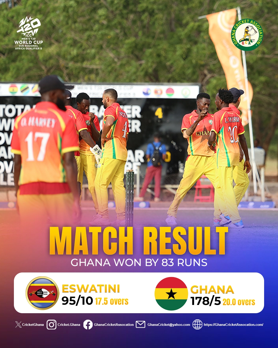 - Result: Ghana won by 83 runs